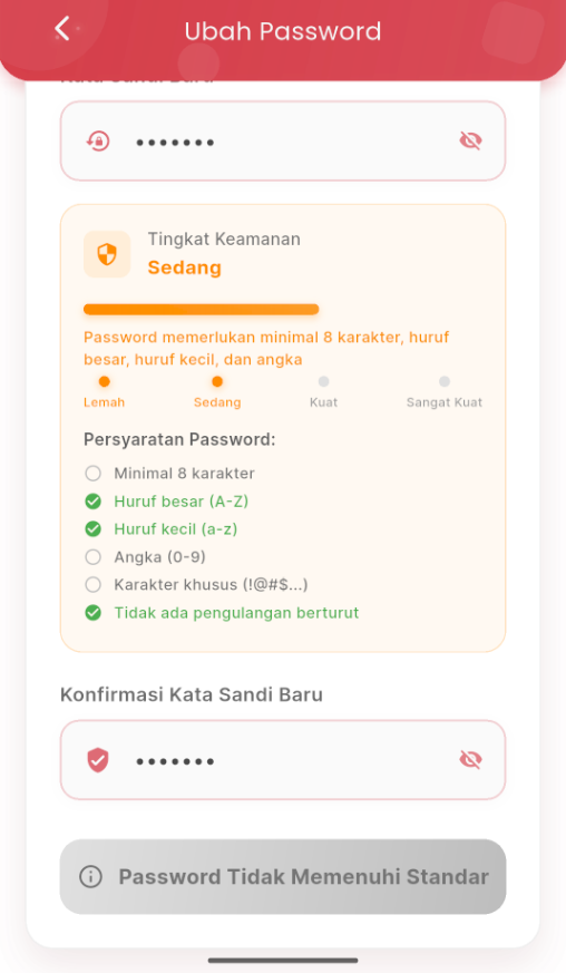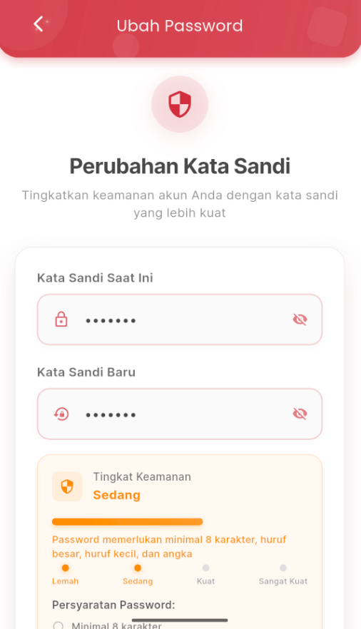 - The system will automatically assess the security level of your new password (Weak, Medium, Strong, or Very Strong).