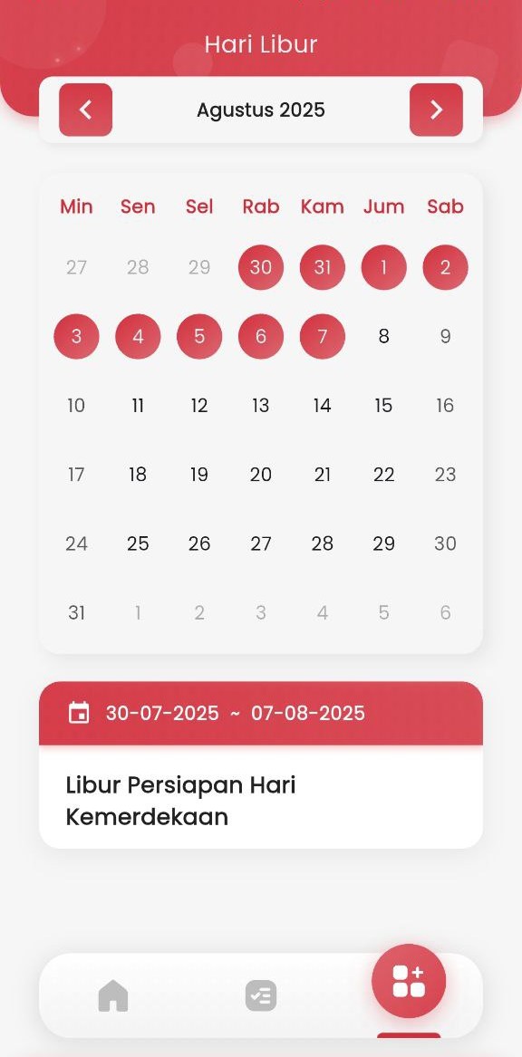 Students can view holidays in other months using the left-right navigation buttons at the top of the calendar. - Holiday Details